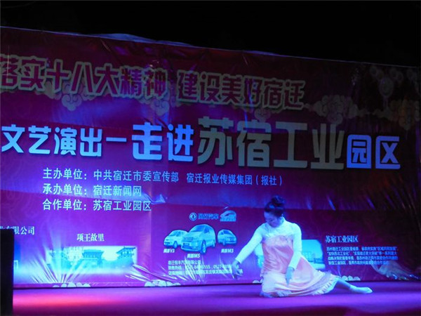 落實(shí)十八大精神 建設(shè)美好宿遷”服務(wù)基層文藝演出由市委宣傳部、宿遷報(bào)業(yè)傳媒集團(tuán)(報(bào)社)主辦,宿遷新聞網(wǎng)承辦,旨在深入宣傳黨的十八大和市委四屆三次全體(擴(kuò)大)會(huì)議精神,落實(shí)文化惠民措施,將走進(jìn)全市100余個(gè)鄉(xiāng)鎮(zhèn)、社區(qū),將包括歌舞、雜技、曲藝、戲劇等內(nèi)容的百場(chǎng)精彩演出奉獻(xiàn)給廣大基層群眾,此次受園區(qū)邀請(qǐng),專(zhuān)程赴園區(qū)公舍演出,為廣大工友及周邊居民帶來(lái)了一場(chǎng)精彩的文化大餐。