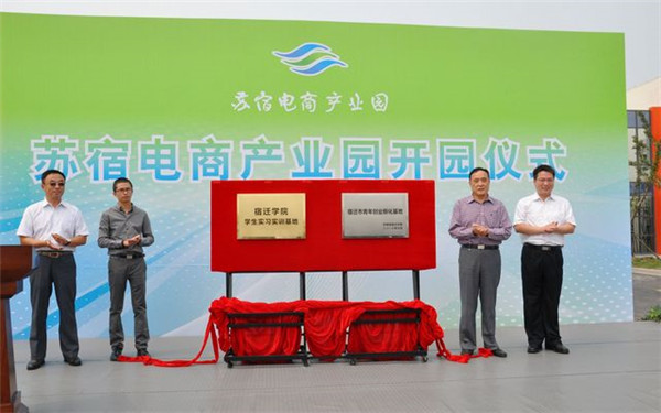 開園儀式上,顧玉坤同蘇州歐富朗電子商務(wù)有限公司總經(jīng)理趙慧、團(tuán)市委書記陳偉、宿遷學(xué)院科技處處長周德廉共同為“宿遷市青年創(chuàng)業(yè)孵化基地”、“ 宿遷學(xué)院學(xué)生實(shí)習(xí)實(shí)訓(xùn)基地”揭牌。