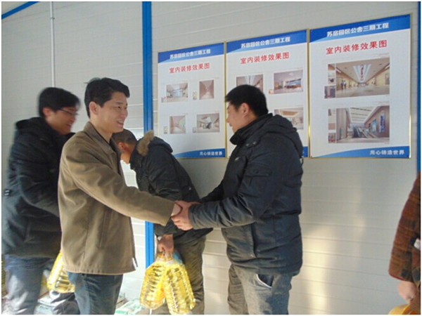 近日,開發(fā)公司黨支部開展春節(jié)前夕走訪慰問(wèn)活動(dòng),對(duì)公司在建工程工地的10余名生活困難工人進(jìn)行了慰問(wèn),為他們送上慰問(wèn)品,帶去節(jié)日的問(wèn)候。公司黨支部書記、副總裁劉建華參加活動(dòng)。