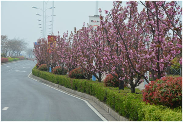 為把園區(qū)青海湖西路打造園區(qū)“櫻花大道”,按管委會部署,開發(fā)公司市政工程管理部對青海湖西路的行道樹進(jìn)行整體更換,用櫻花代替原長勢不佳的廣玉蘭,經(jīng)過兩年的精心養(yǎng)護(hù),整體長勢良好,每逢春季來臨櫻花盛開,為園區(qū)的景觀增添亮點,成為一道獨特靚麗的風(fēng)景線。
