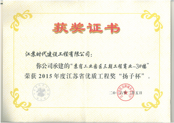 江蘇省“揚子杯”優(yōu)質工程獎是我省建設工程質量最高榮譽獎,為省人民政府確定的行政獎勵, 代表了我省當前工程建設質量的最高水平。揚子杯每年評審一次,評選對象為我省境內(nèi)、已經(jīng)建成并投入使用的各類建設工程。該獎的設立旨在促進建設和施工單位提高工程質量水平、增強建筑精品意識。