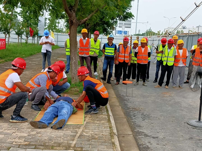 近期,市政工程部在園區(qū)鏡泊湖路東延段施工現(xiàn)場(chǎng)組織開展防暑降溫應(yīng)急救援演練。由鏡泊湖路項(xiàng)目班組實(shí)施模擬現(xiàn)場(chǎng),開發(fā)公司代建所有市政工程項(xiàng)目現(xiàn)場(chǎng)觀摩學(xué)習(xí)。