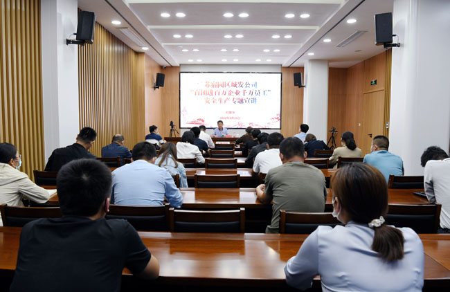 為深入習(xí)近平總書記關(guān)于安全生產(chǎn)的重要論述和指示批示精神、安全生產(chǎn)“十五條”硬措施、新《安全生產(chǎn)法》以及安全生產(chǎn)大檢查、重點(diǎn)行業(yè)領(lǐng)域安全生產(chǎn)百日攻堅(jiān)行動(dòng),認(rèn)真落實(shí)全省“百團(tuán)進(jìn)百萬(wàn)企業(yè)千萬(wàn)員工”安全生產(chǎn)宣講活動(dòng)的安排部署。9月23日下午,宿遷市蘇宿工業(yè)園區(qū)城市發(fā)展投資有限公司董事長(zhǎng)劉建華作安全生產(chǎn)專題宣講。