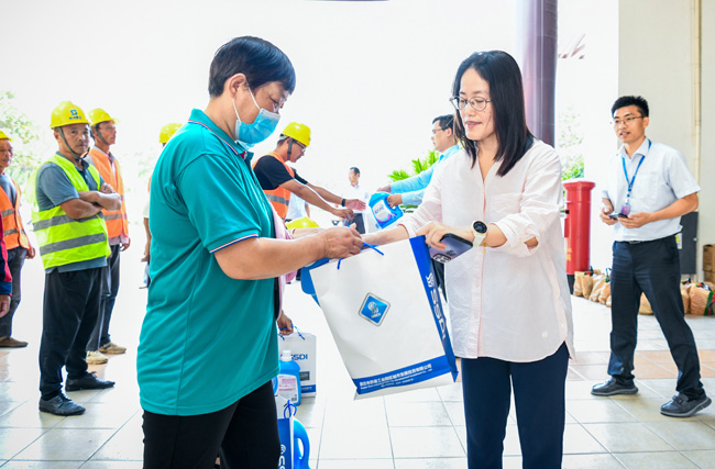 “大家在做好本職工作同時(shí),注意保重身體,防暑措施一定要做到位,確保安全生產(chǎn)。”在明日鄰里中心慰問現(xiàn)場,李蘭霞與物業(yè)員工們親切交談,感謝他們?yōu)楣景l(fā)展和民生保障付出的辛勤努力,反復(fù)叮囑大家要提高夏日防暑意識,做好自我防護(hù),確保以更好的狀態(tài)投入到工作中。現(xiàn)場強(qiáng)調(diào)各部門要守牢安全底線,做好高溫時(shí)節(jié)各項(xiàng)工作,普及好防暑降溫和急救知識,確保廣大一線職工的安全。
