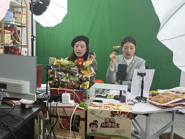 當天,電商產(chǎn)業(yè)園內(nèi)的“直播大棚”人氣爆棚。主播們在鏡頭前與消費者展開互動,充滿激情地介紹各類商品,通過生動的語言和直觀的展示,將商品的特點和優(yōu)勢傳達給觀眾,引導他們進行購買,主播們還以抽獎、送禮等方式增加直播的趣味和互動,吸引更多觀眾的參與。