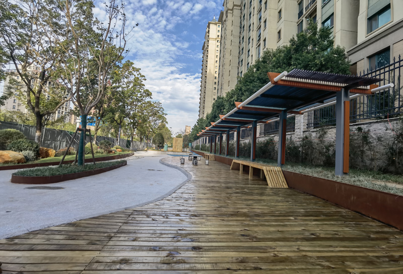 園區(qū)因地制宜,充分利用公共綠地、邊角地等小地塊,在群眾家門口建設(shè)了一批小而精的“口袋公園”,在增加綠化覆蓋率,改善城市環(huán)境的同時(shí),也讓市民的幸福感逐步攀升。