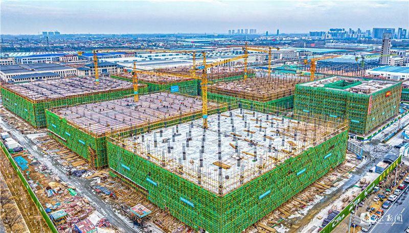 12月26日,蘇宿工業(yè)園區(qū)智慧信息產(chǎn)業(yè)園項(xiàng)目施工現(xiàn)場,建設(shè)人員正在有序施工。
