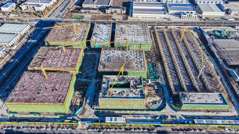 1月7日,蘇宿工業(yè)園區(qū)智慧信息產(chǎn)業(yè)園項(xiàng)目施工現(xiàn)場(chǎng),工作人員正在有序施工。