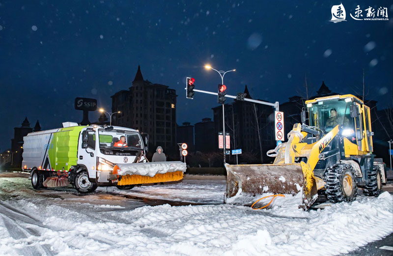 2月21日凌晨,蘇宿工業(yè)園區(qū)各部門(mén)迅速行動(dòng),組織人員、機(jī)械連夜進(jìn)行除雪作業(yè),齊力保障市民出行安全。