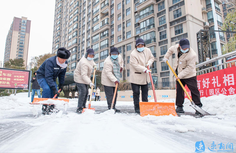 2月21日,蘇宿工業(yè)園區(qū)遇雨雪冰凍天氣,環(huán)衛(wèi)、城管、城發(fā)公司等單位與黨員志愿者、群眾齊力奮戰(zhàn)鏟雪除冰,保障市民出行安全。