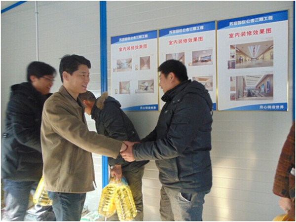 近日,園區(qū)開(kāi)發(fā)公司黨支部開(kāi)展春節(jié)前夕走訪慰問(wèn)活動(dòng),對(duì)公司在建工程工地的10余名生活困難工人進(jìn)行了慰問(wèn),為他們送上慰問(wèn)品,帶去節(jié)日的問(wèn)候。公司黨支部書記、副總裁劉建華參加活動(dòng)。