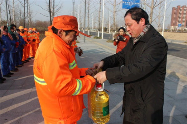 1月20日上午,園區(qū)黨工委委員、規(guī)劃建設(shè)局局長周原帶隊慰問了奮戰(zhàn)在一線的城市維護人員,向他們送上了春節(jié)的問候。