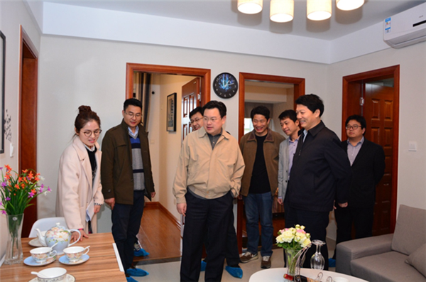 4月6日下午,副市長、園區(qū)黨工委書記、管委會主任方文浜現(xiàn)場調(diào)研“夢家園·融園”售樓處、樣板房,工委領(lǐng)導(dǎo)戈亮及相關(guān)局辦、公司負責人陪同調(diào)研。