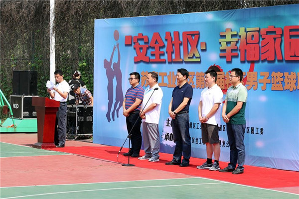 6月18日,“安全社區(qū)·幸福家園杯”園區(qū)第二屆社區(qū)男子籃球聯(lián)賽,在園區(qū)公舍籃球場(chǎng)精彩開幕,園區(qū)黨工委委員、管委會(huì)副主任戈亮出席開幕式。