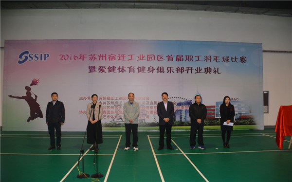 10月22日,2016年度園區(qū)首屆職工羽毛球比賽暨園區(qū)愛健體育健身俱樂部開業(yè)典禮正式舉行。市體育局局長錢輝、副局長王艷,園區(qū)黨工委委員、管委會副主任戈亮,市體育產(chǎn)業(yè)發(fā)展有限公司總經(jīng)理趙九龍等領(lǐng)導(dǎo)參加了開業(yè)典禮。